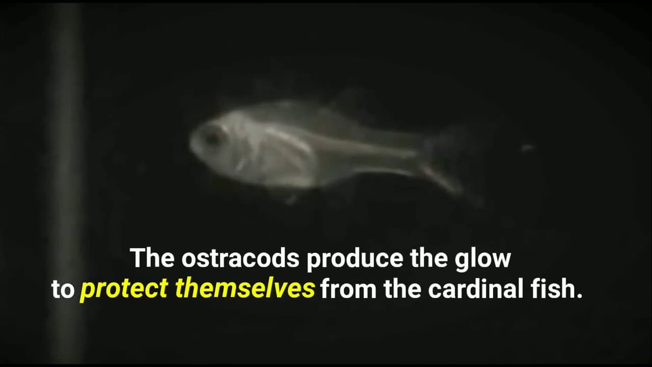 When caught in the mouths of cardinal fish, this type of ostracod releases luciferins and photoproteins to illuminate the fish’s body quickly. Fearing being seen by a larger predator, the ostracod is released alongside the chemicals.